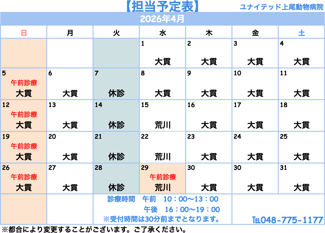 当院は埼玉県上尾市にある動物病院です。小さい病院ながらベテランの獣医師とトリマー、動物看護師が丁寧に診察致します。