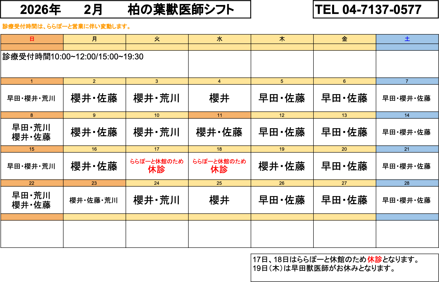 詳しくはページ下部の獣医師シフト表をご確認ください。