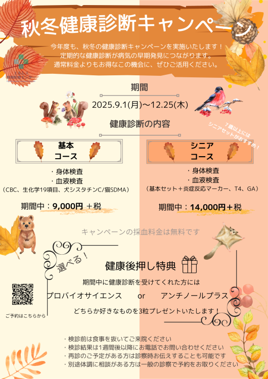 秋の涼しい時期に、寒さが本格的になる前に検診をおすすめします。
