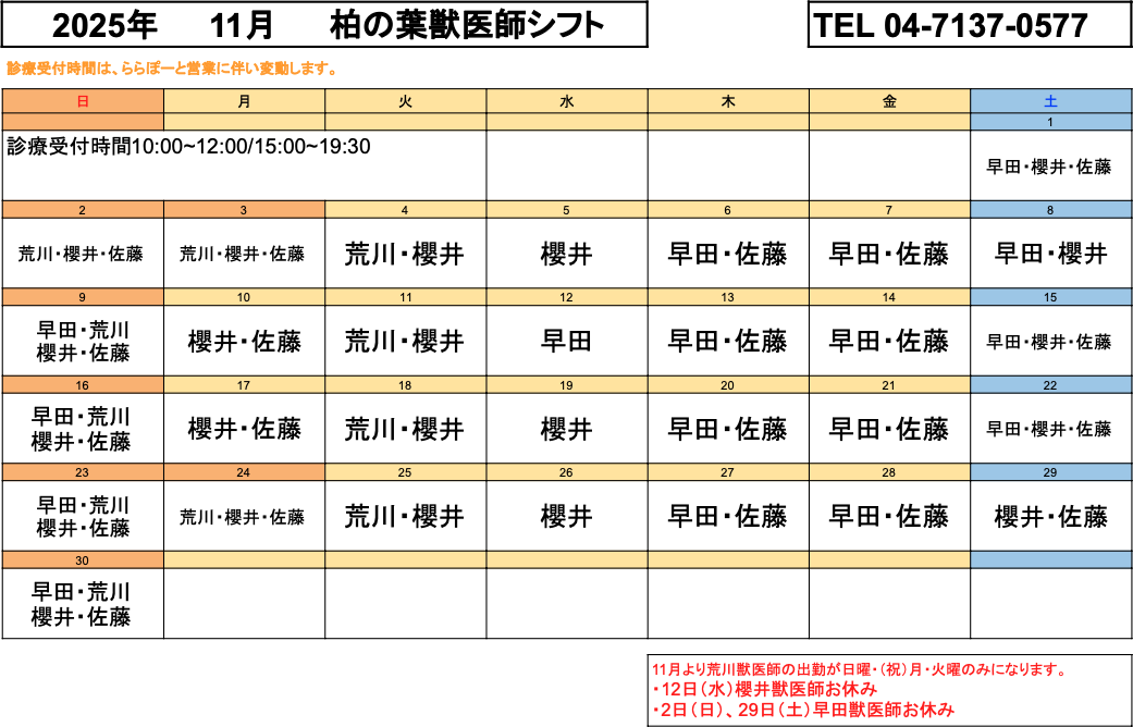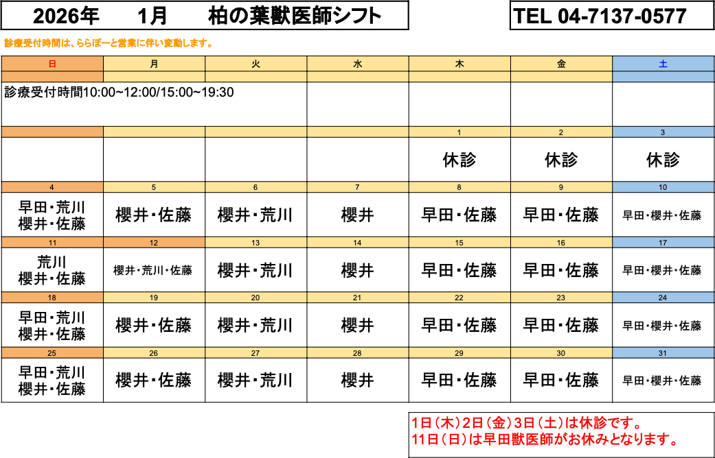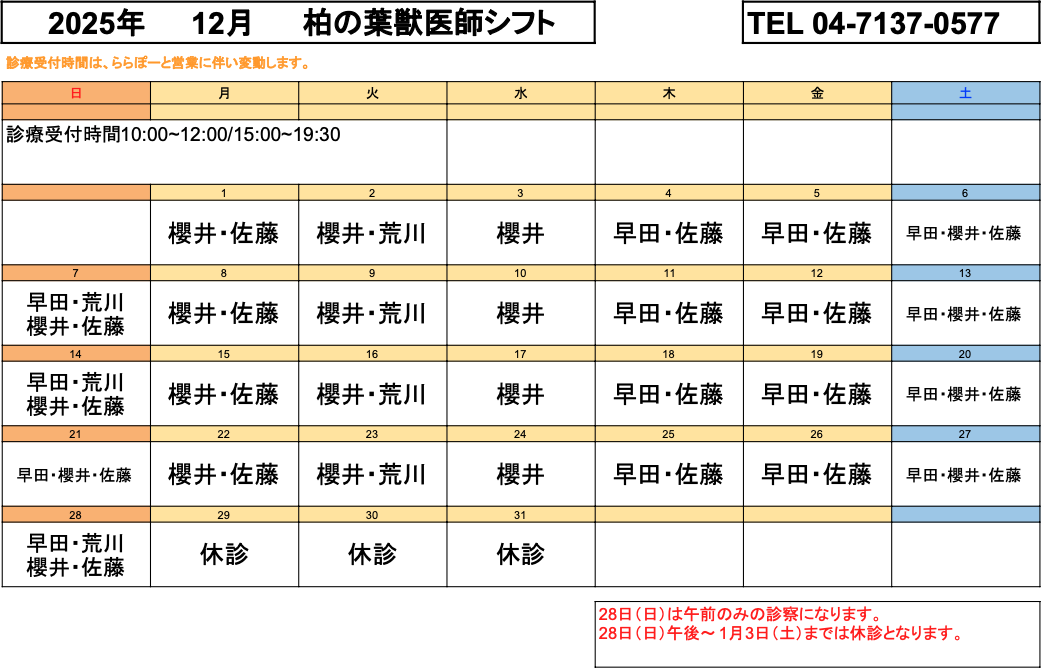 詳しくはページ下部の獣医師シフト表をご確認ください。